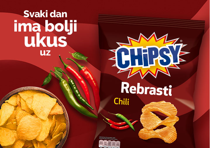 Rebrasti Chili je ljut, ali za neke pak i pomalo sladak. Sve zavisi od toga šta voliš. Upravo ta slatko-ljuta kombinacija na valovito sječenom krompiru je ono što ga čini posebnim.